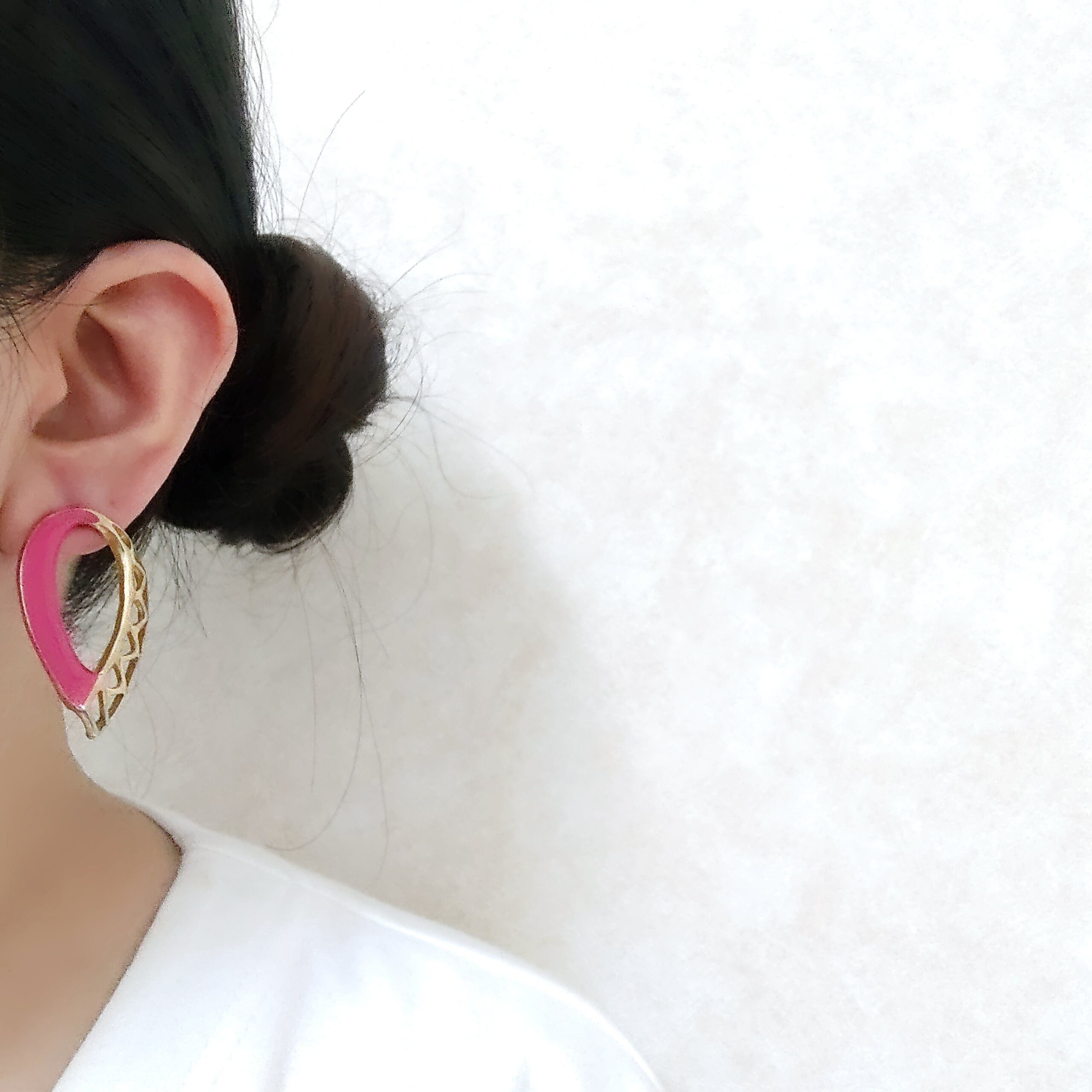 openwork teardrop vivid pink enamel vintage pierced earrings ヴィンテージピアス