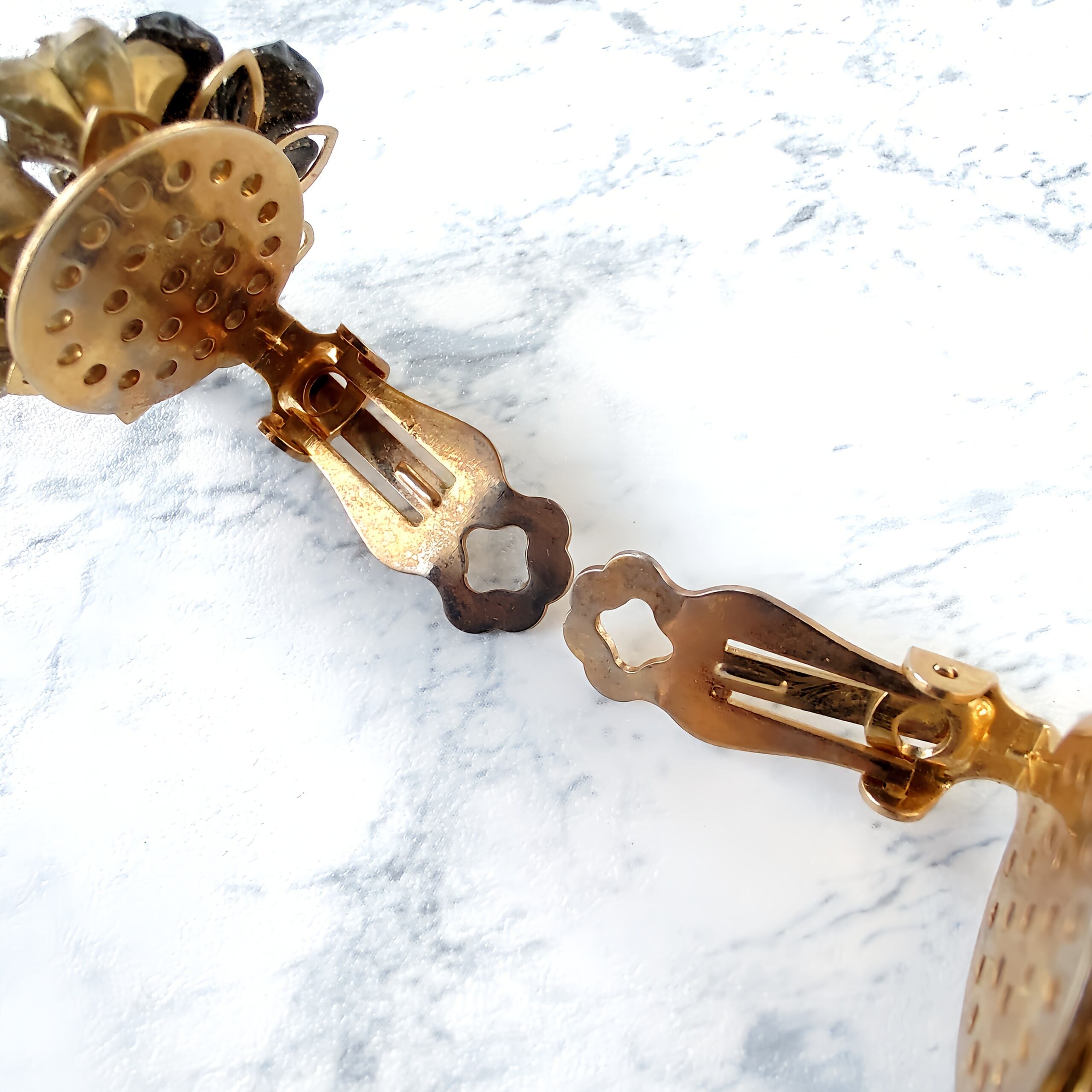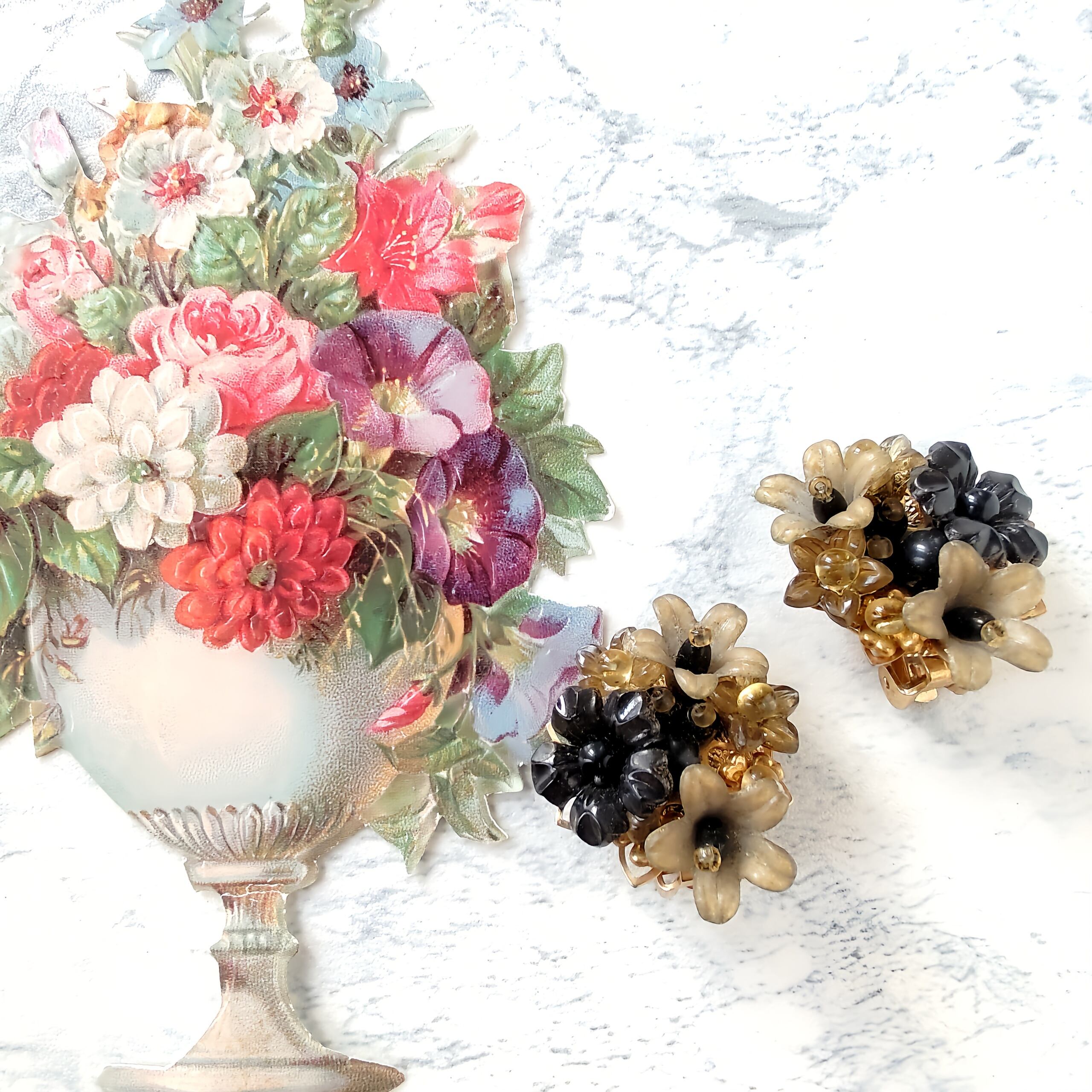 《Colleen Toland》 black beige amber flower cluster vintage earrings コリン トーランド ヴィンテージイヤリング