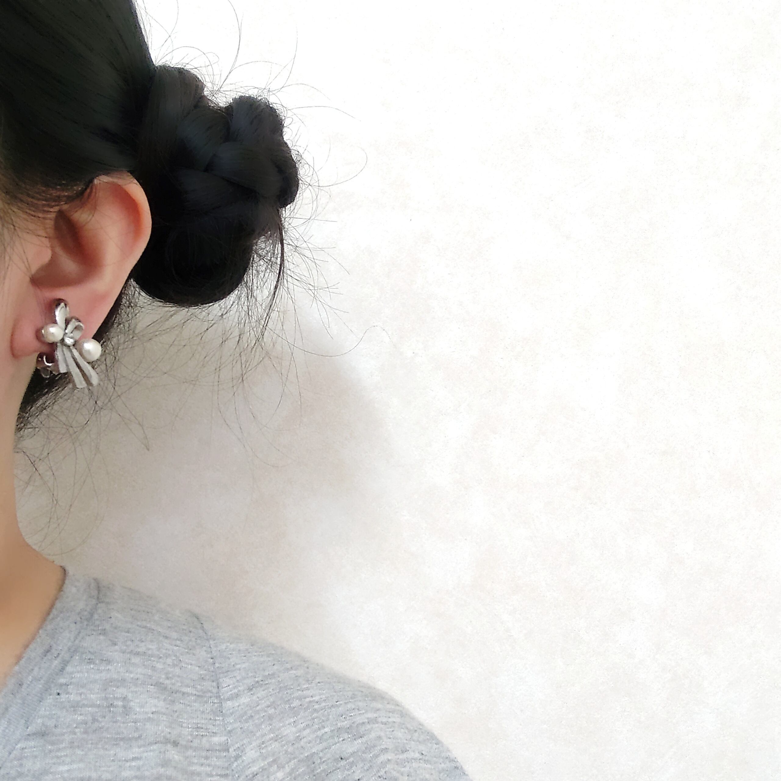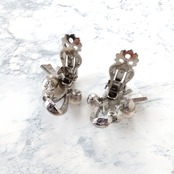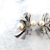 silver ribbon faux pearl clear rhinestone vintage earrings ヴィンテージイヤリング