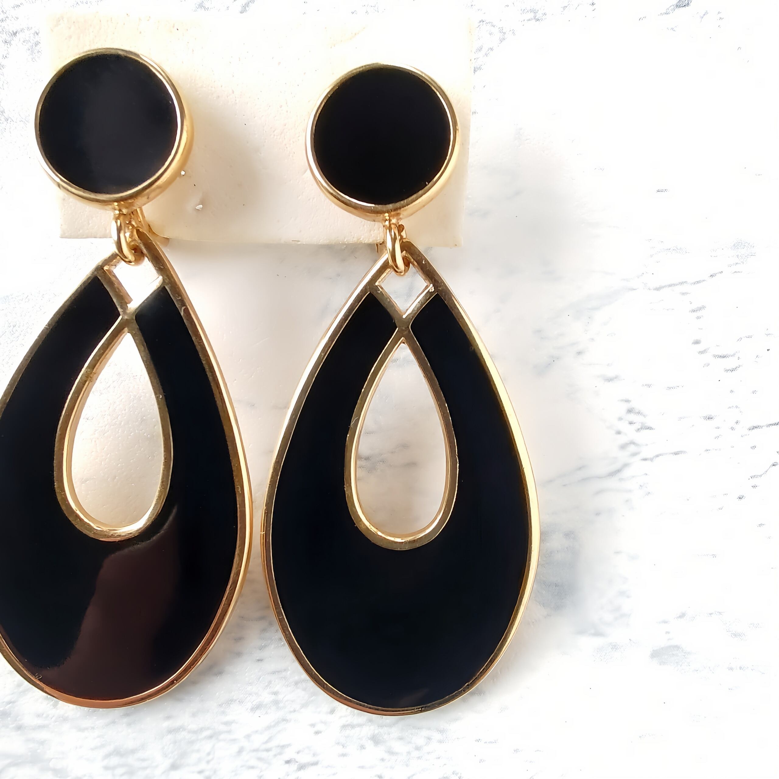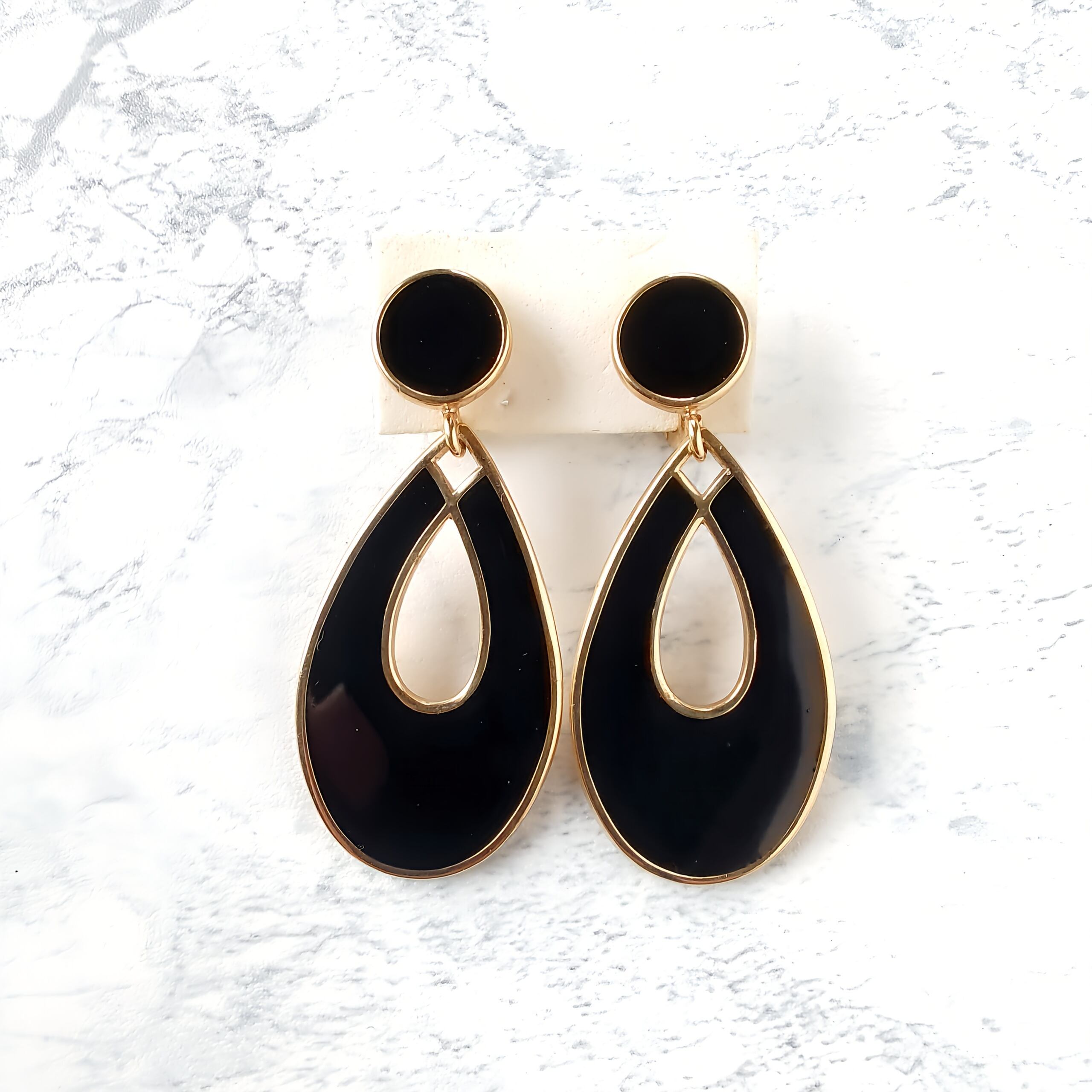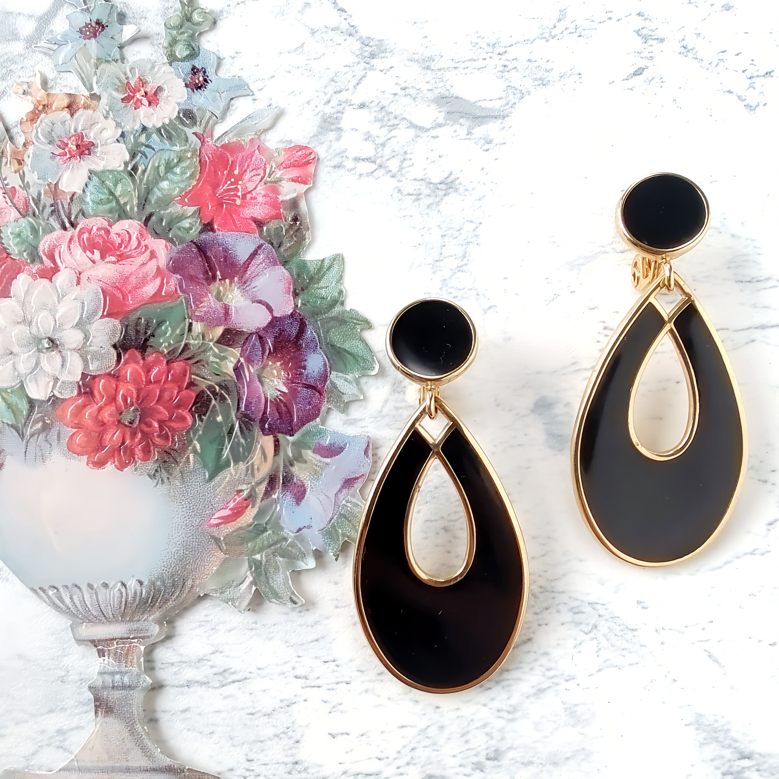 《MONET》 black enamel teardrop hoop dangle vintage earrings モネ ヴィンテージイヤリング