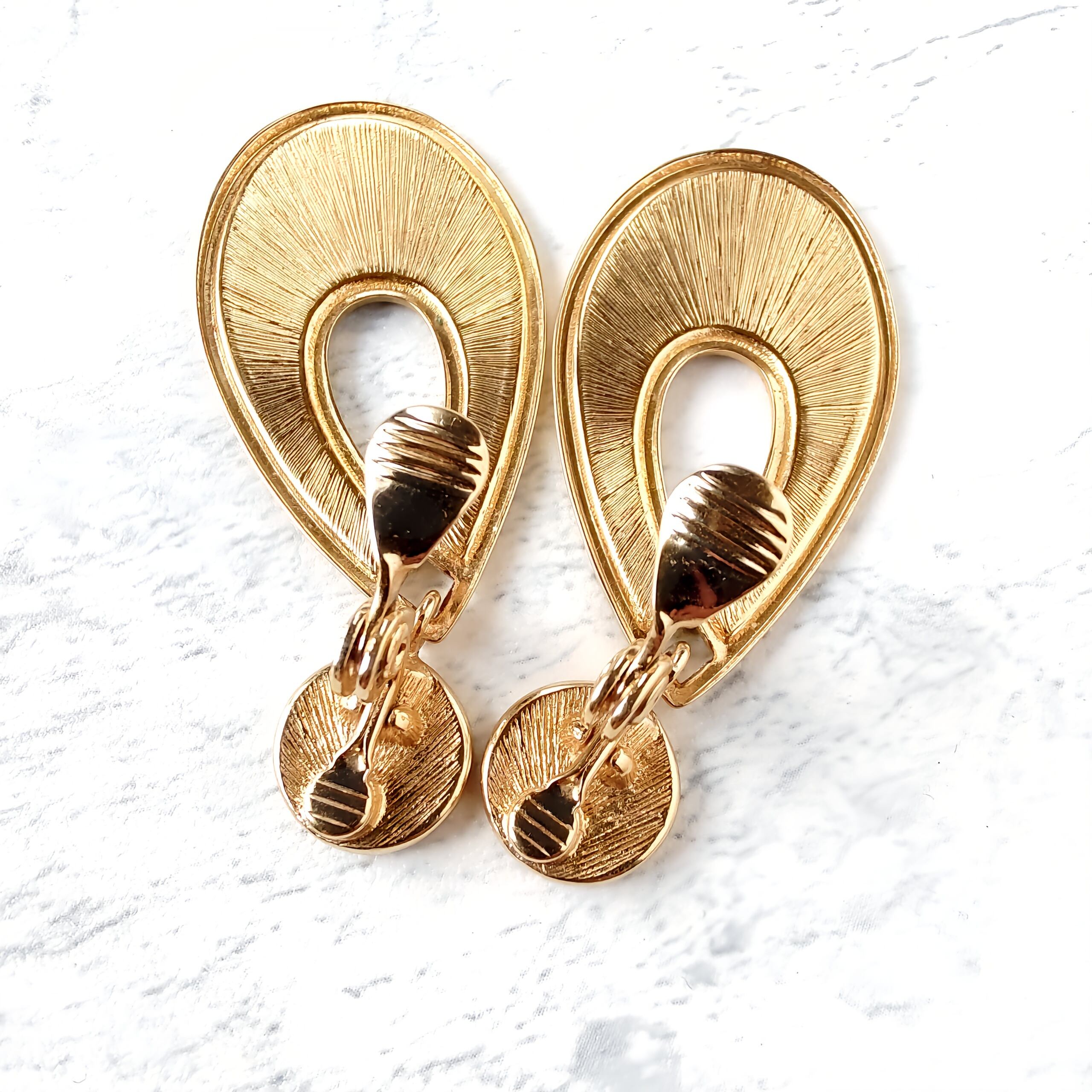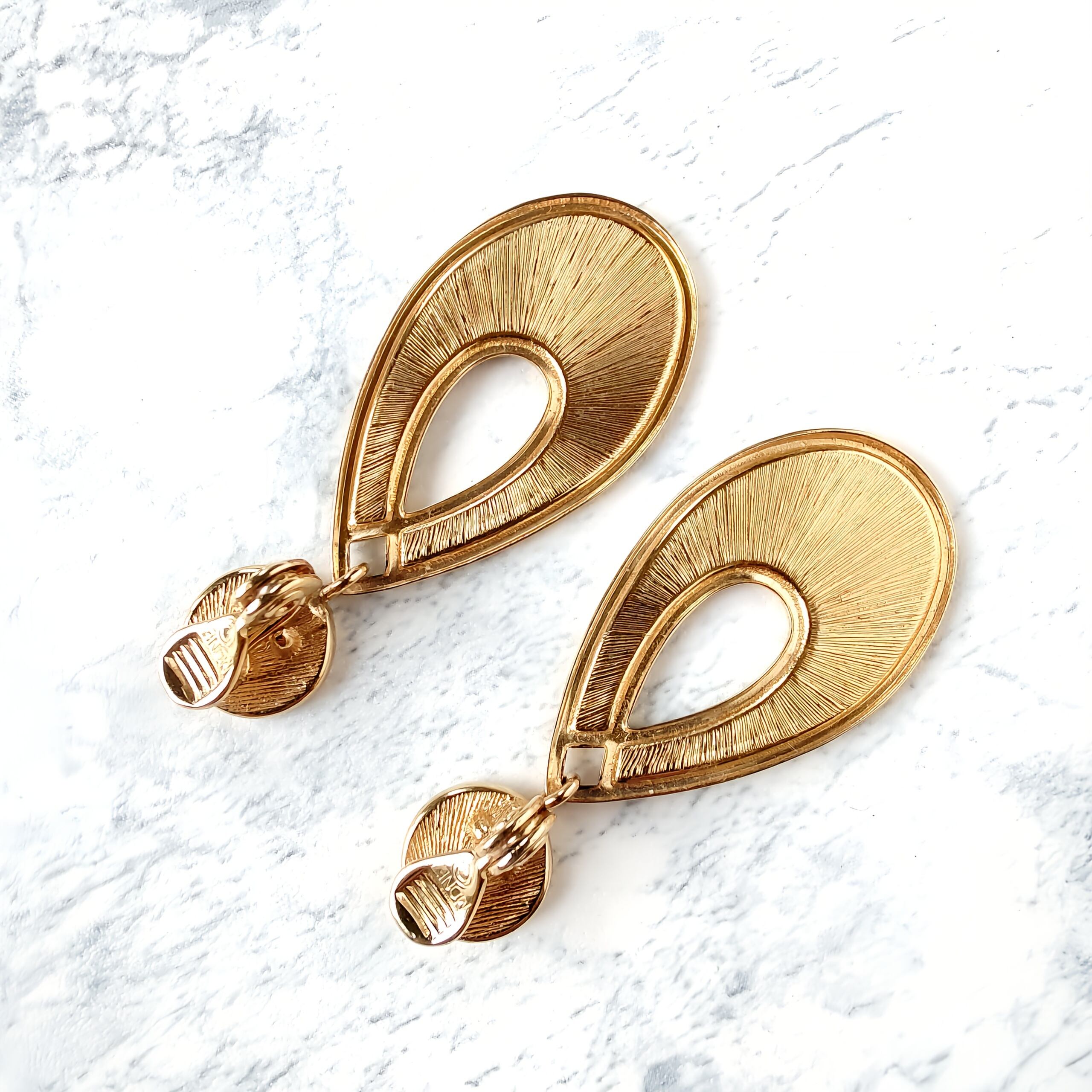 1927年ロードアイランドにて創業、1937年会社名を変更しアクセサリー制作を開始したMONET(モネ)のブラックのエナメルで色付けされたティアドロップのフープが揺れるデザインのヴィンテージイヤリングです。