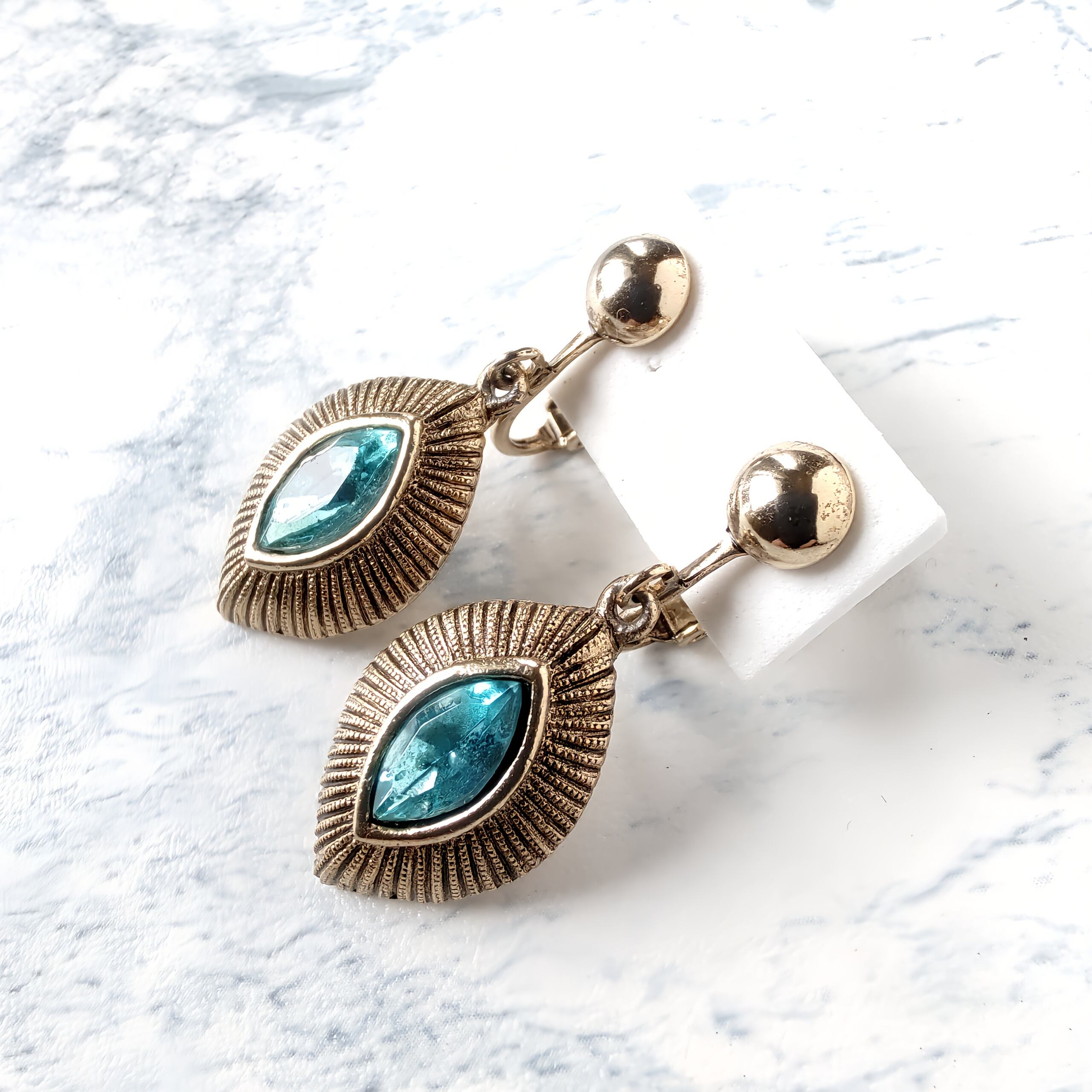 ライトブルーのマーキスラインストーンがあしらわれた揺れるデザインのヴィンテージイヤリングです。